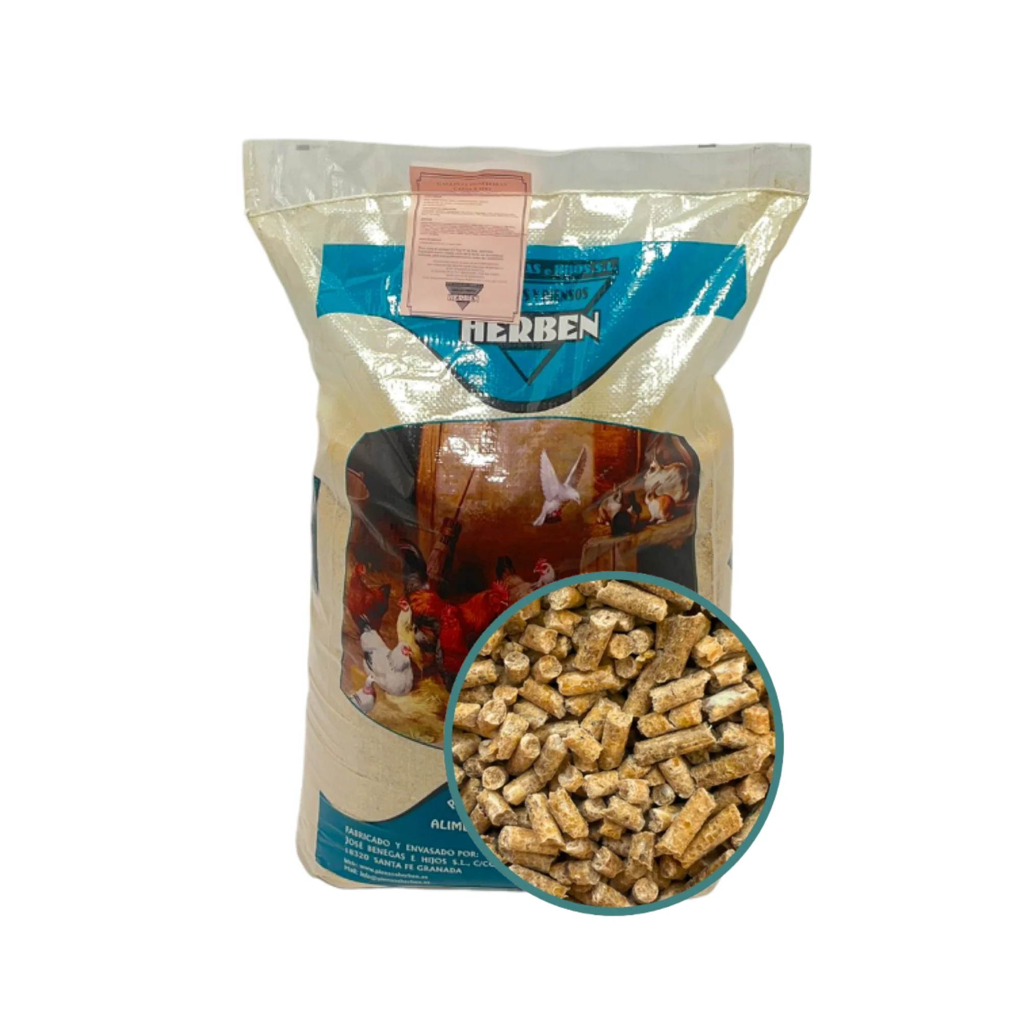 Descubre el pienso granulado para gallinas ponedoras Herben, nuestro producto estrella elaborado con materias primas nacionales de la más alta calidad. Esta fórmula exclusiva está diseñada para proporcionar una alimentación completa y balanceada que optimiza la calidad de los huevos y promueve la salud general de tus gallinas.